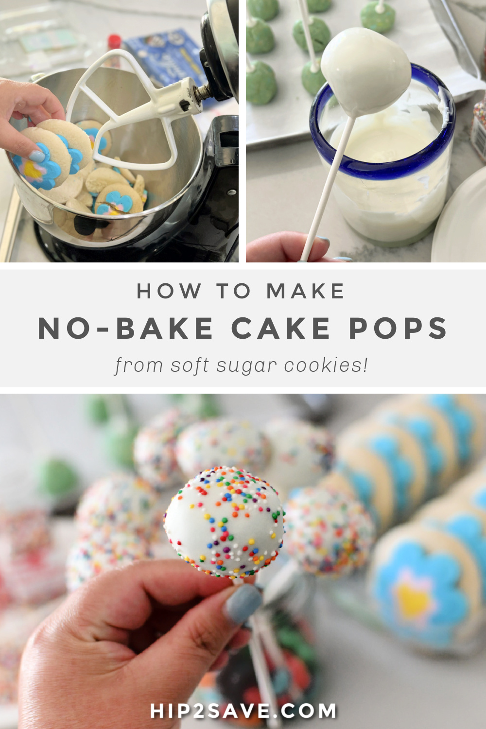 I’m sharing the easiest way ever to make DIY cookie pops, aka sugar cookie cake pops – no baking involved!