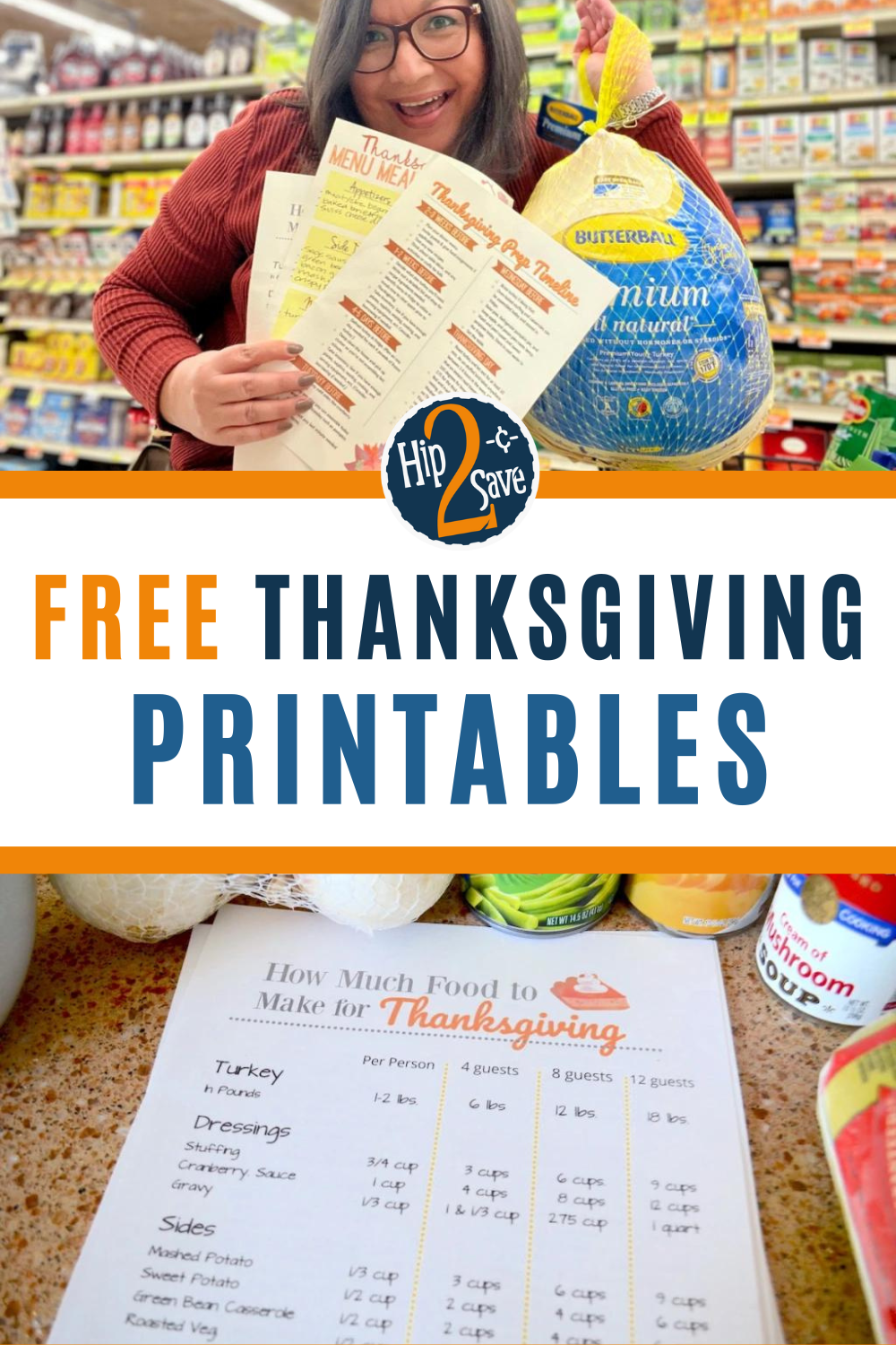 Use this FREE printable to know how much food you’ll need for each dish you’re serving this year. This cheat sheet can help you plan accordingly for families and Thanksgiving celebrations of all sizes!