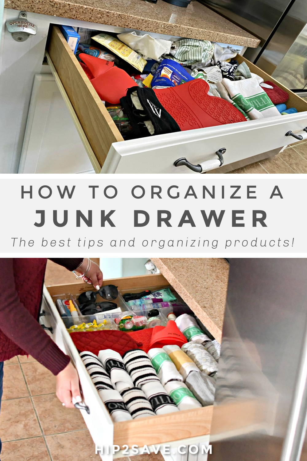 Wondering how to organize a drunk drawer? From tackling the clutter to the very best way to fold all your kitchen towels, here’s how to easily get your messy junk drawers organized for the new year!